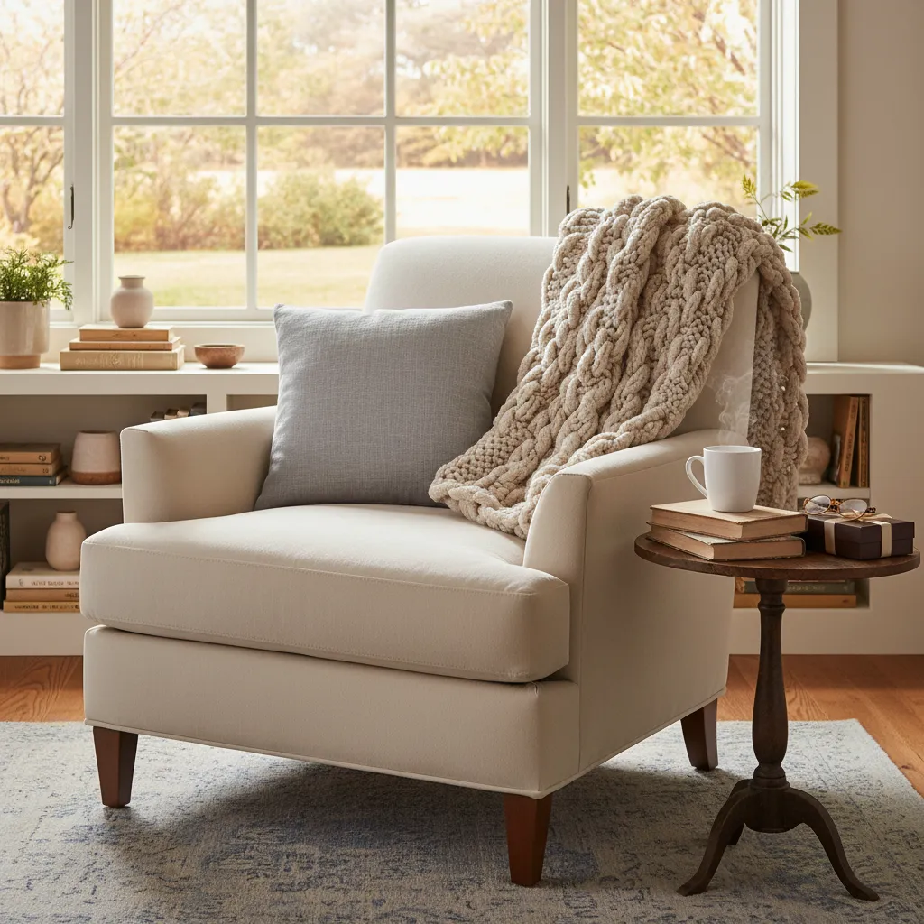 Set up a small side table next to the chair, complete with a stack of her favorite magazines, a beautiful mug, and perhaps a small box of premium chocolates. You can easily blend seasonal comfort with rustic charm to make the space feel extra inviting. Drawing inspiration from Charming Winter Farmhouse Decor Ideas can actually work beautifully in the spring when you swap out heavy wools for lighter cotton blends while keeping the cozy aesthetic.
