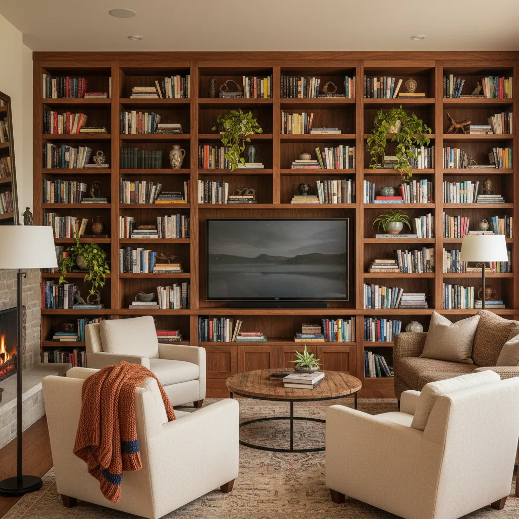 For the book lovers, integrating your TV into a floor-to-ceiling bookshelf is a dream come true. This approach makes the TV a part of your personal library, surrounded by the things you love. It’s a cozy, intellectual, and highly functional home decor solution.