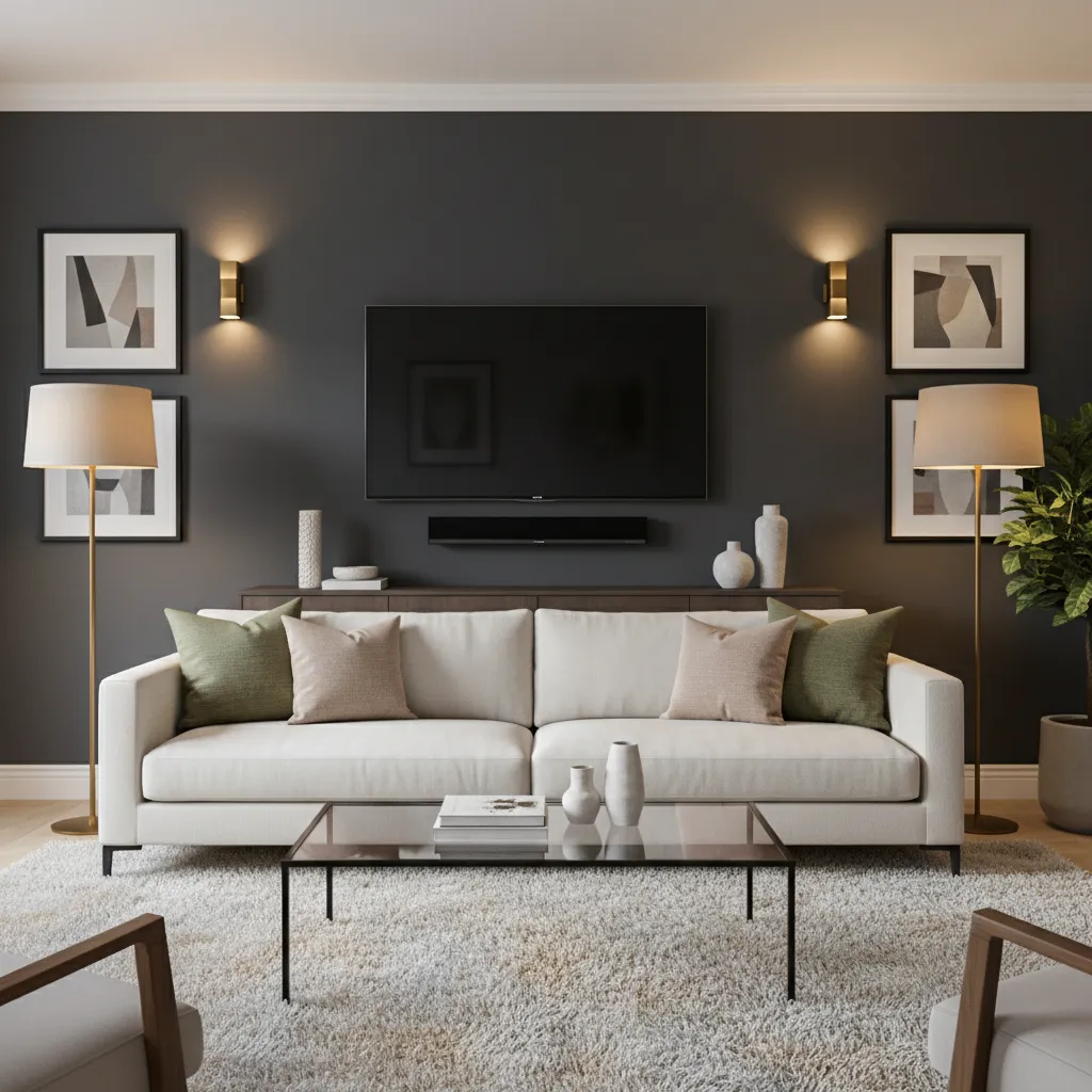 - Balance with Light Elements: To prevent the room from feeling too heavy, balance the dark wall with lighter furniture, a light-colored rug, and plenty of natural light.