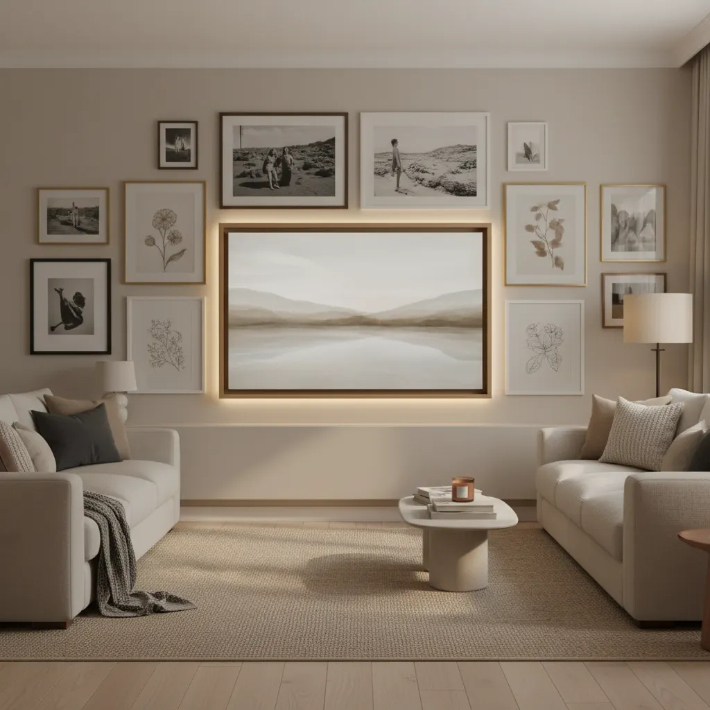 - Gallery Wall Integration: Place your framed TV within a larger gallery wall. Surrounding it with other framed prints, photos, and art pieces makes it just one element of a larger, cohesive collection.