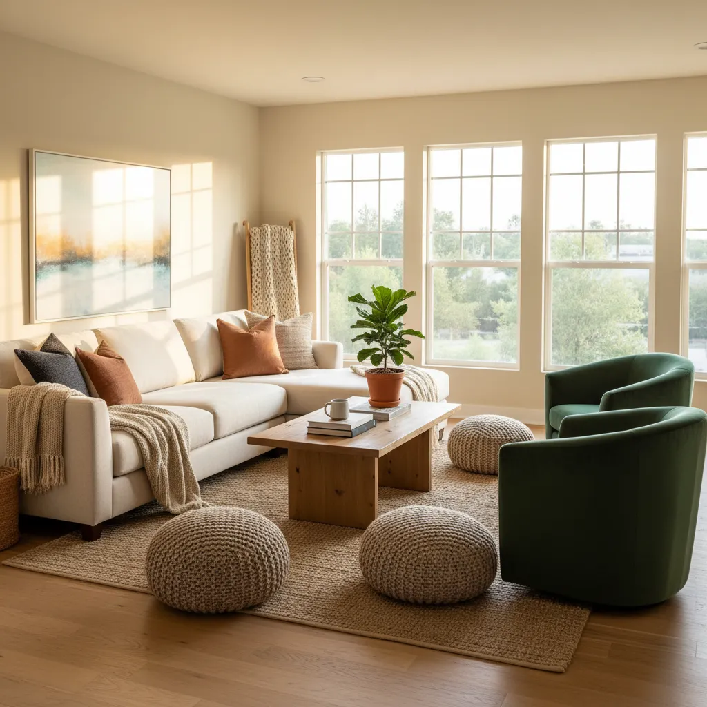 Practical Tip: Ensure your living room has enough comfortable seating for your whole family, using floor cushions or ottomans for flexible options.