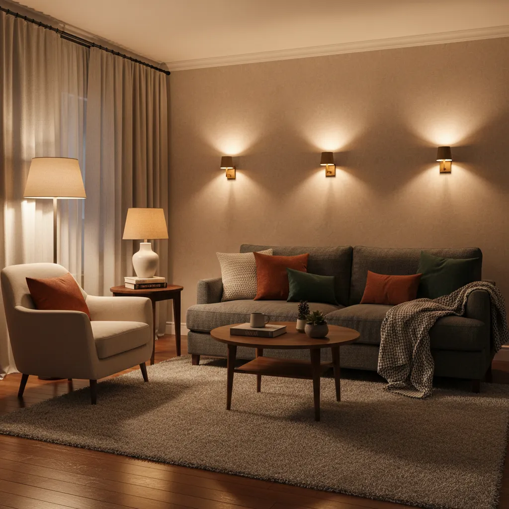 Practical Tip: Use a mix of floor lamps, table lamps, and wall sconces with warm-toned LED bulbs.