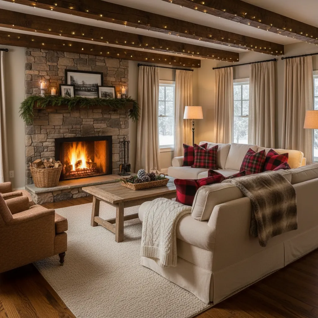 Practical Tip: Incorporate Charming Winter Farmhouse Decor Ideas like chunky knit blankets and plaid throw pillows during colder months.