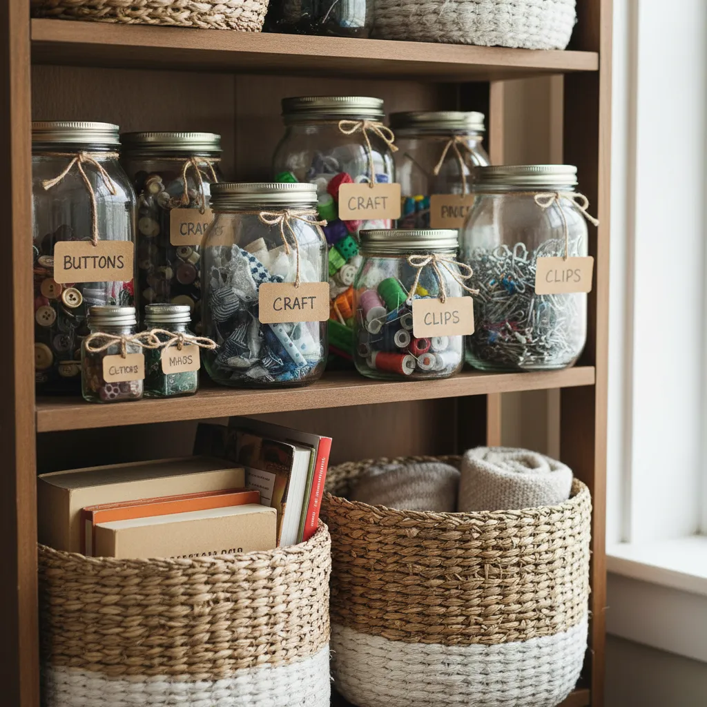 Start by shopping your own home. Before buying new baskets or bins, walk through your house and look for empty containers. A sturdy cardboard box can be wrapped in leftover wallpaper or festive wrapping paper to create beautiful, hidden storage on a bookshelf. Old glass jars from pasta sauce or pickles can be thoroughly washed and used to organize small items like nails in the garage, cotton balls in the bathroom, or craft supplies in the playroom.