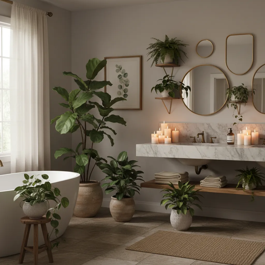 For larger bathrooms, a statement plant like a monstera or fiddle leaf fig can be a stunning focal point. Place it in a decorative pot to tie it into your decor.