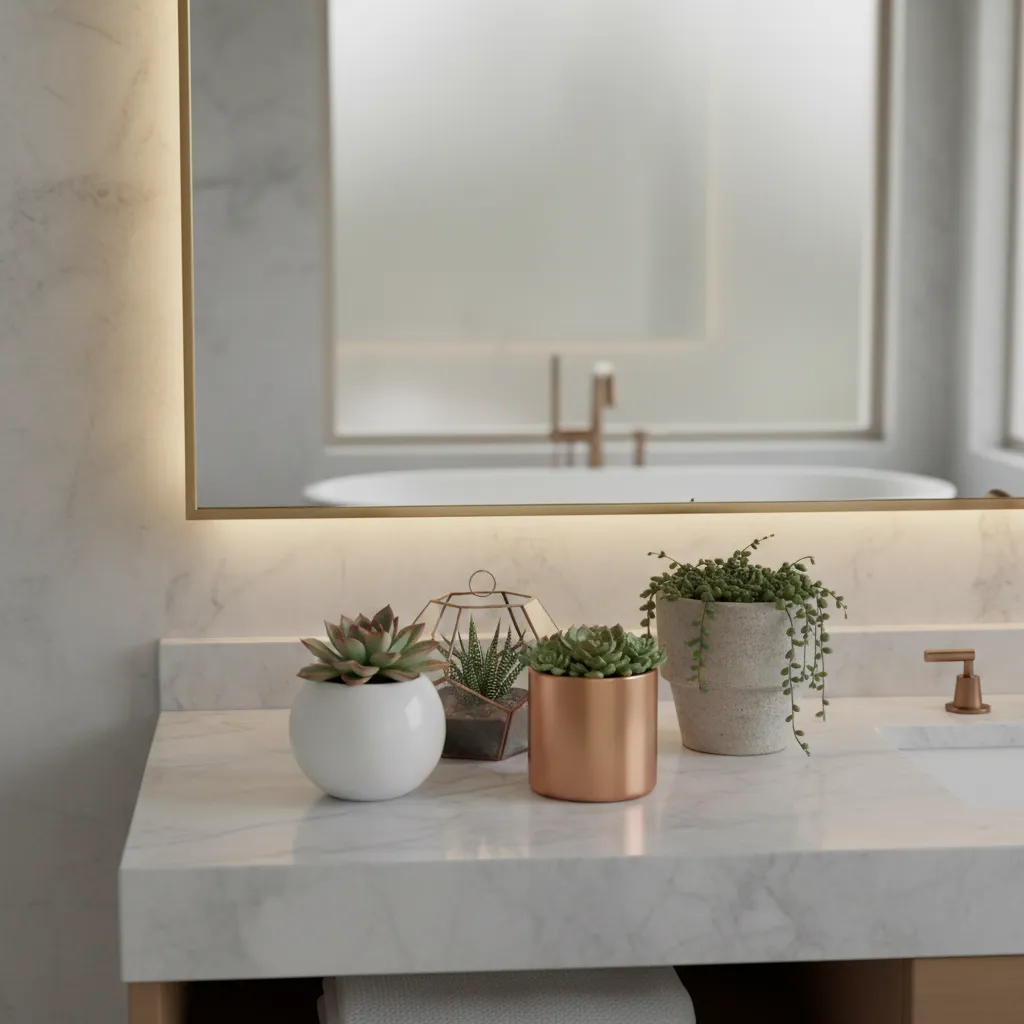 Group a few small succulents in decorative pots on your bathroom counter. They’re low-maintenance and add a modern touch to your decor.