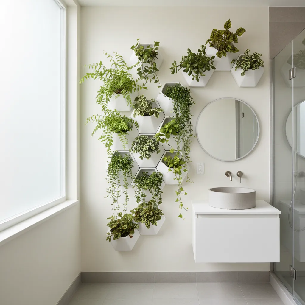 Save floor space by mounting planters directly onto the walls. This works especially well in small bathrooms where every inch counts.