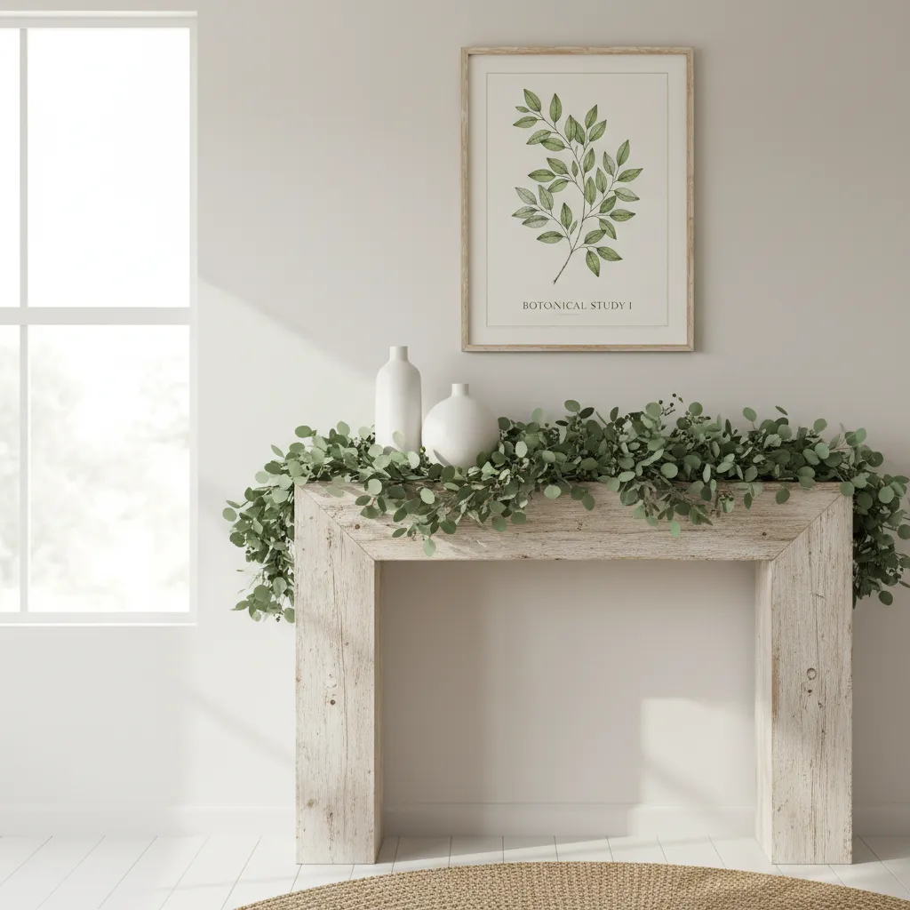 Your fireplace mantel is a key focal point. For summer, clear away the heavier decor and opt for a minimalist approach. A simple garland of eucalyptus, a collection of white ceramic vases, or a framed botanical print can make a beautiful statement.