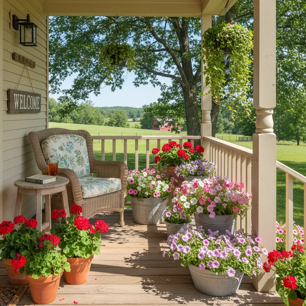 Fill terracotta pots and galvanized steel planters with colorful summer blooms like geraniums, petunias, and ferns. Arrange them on your porch steps or around your patio.