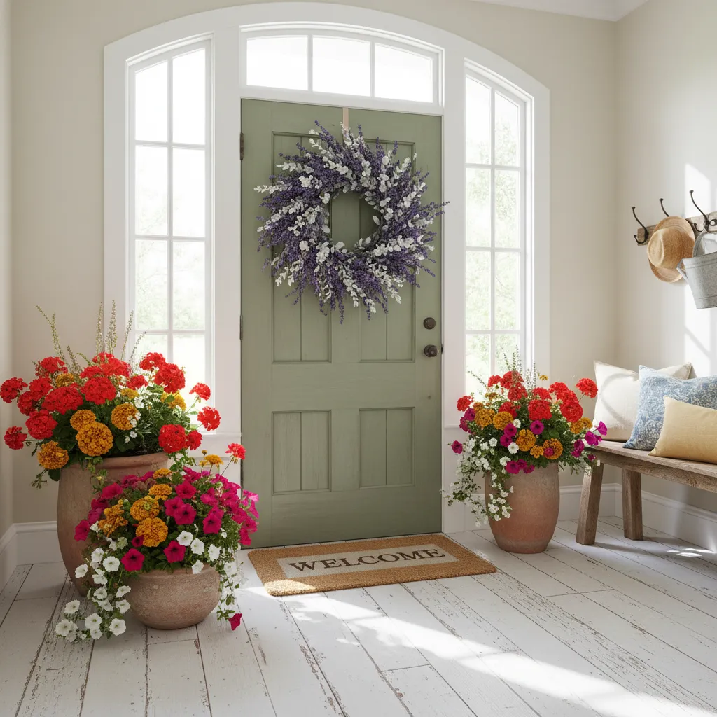Welcome guests with a summer-themed wreath on your front door or above the mantel. A wreath made of lavender, olive branches, or even simple greenery adds a fresh touch to your entryway.