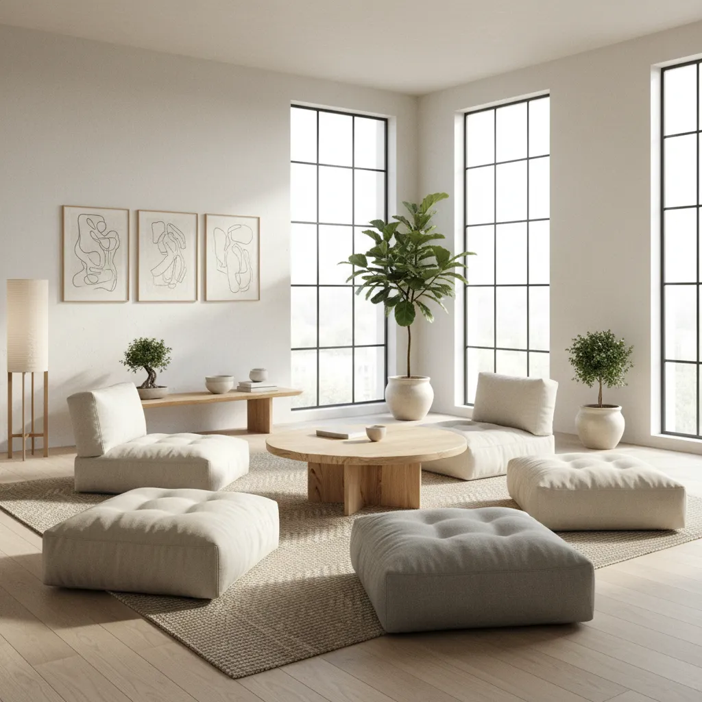 Add large, comfortable floor pillows around a low coffee table. This invites relaxed, intimate conversations and provides extra seating for guests.