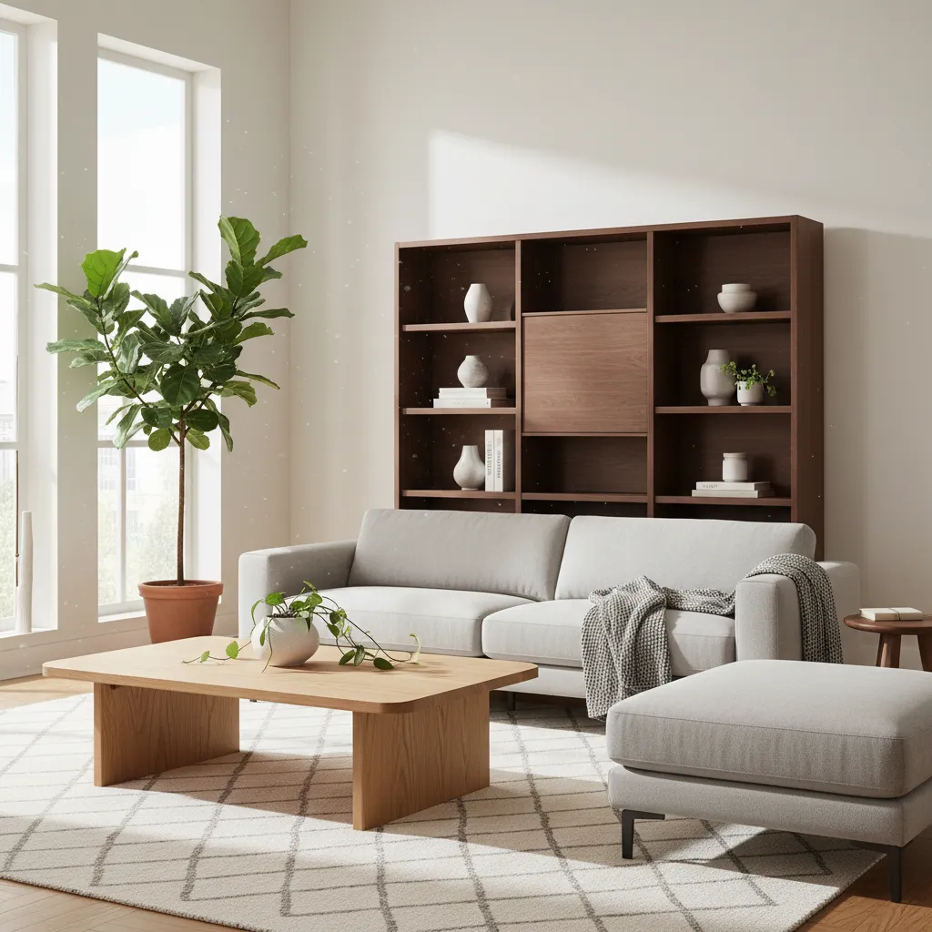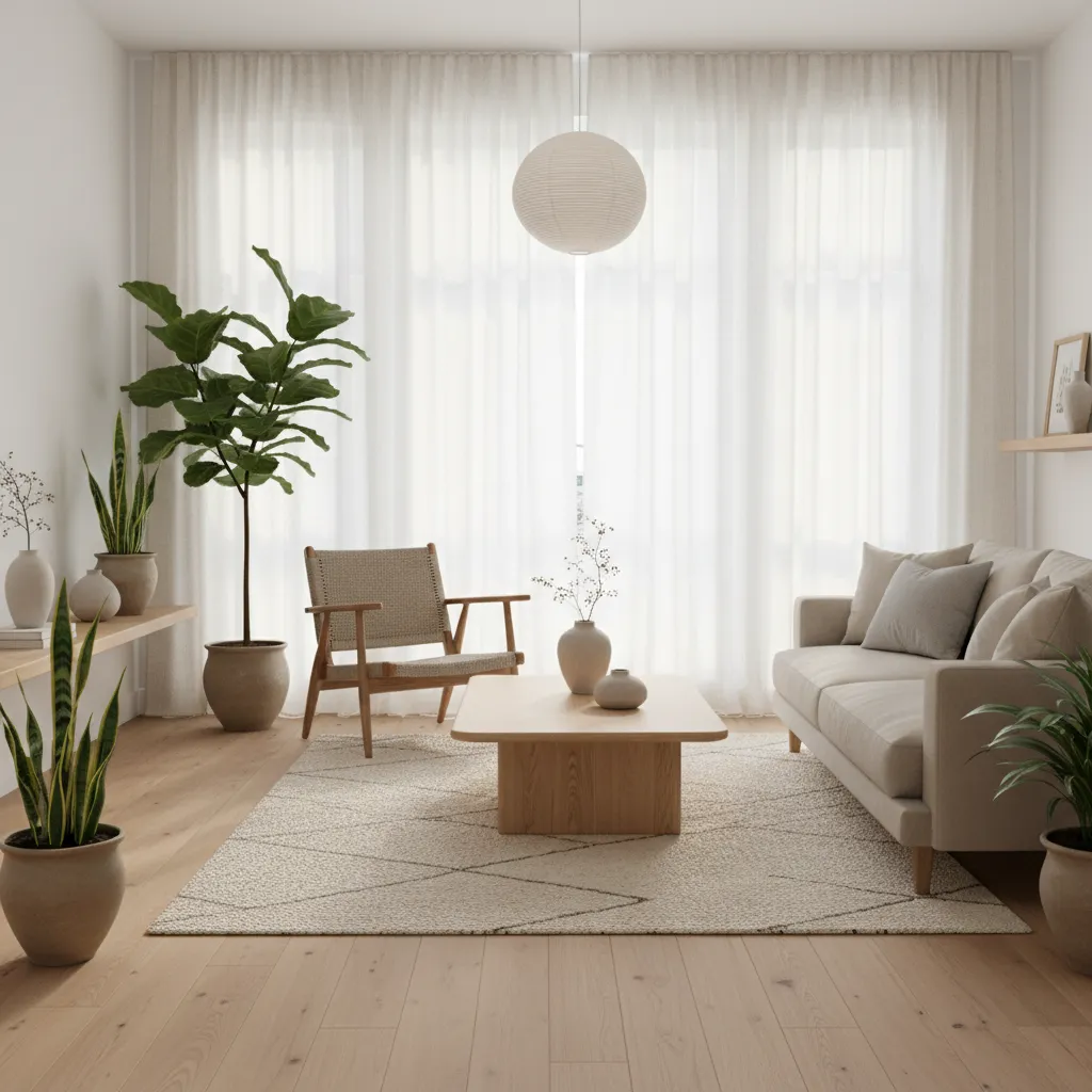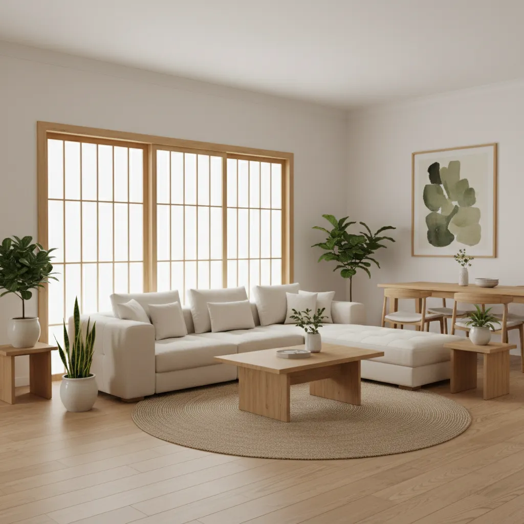 - Buying Matching Furniture Sets: A matched living room set looks rigid. Japandi thrives on a collected, curated feel. Mix different wood tones and furniture styles.