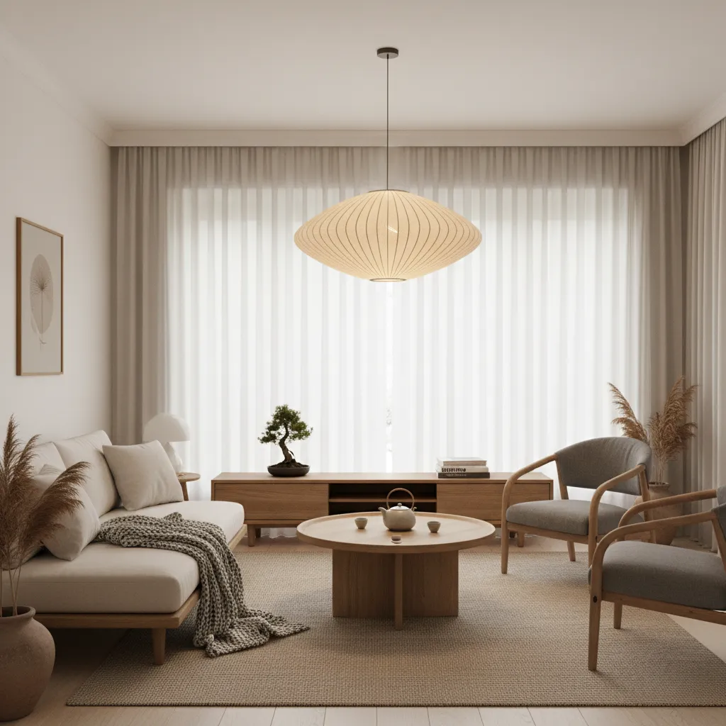 Swap harsh overhead lights for soft paper lanterns. Noguchi-style lamps cast a warm, diffused glow that makes any room feel incredibly cozy at night.