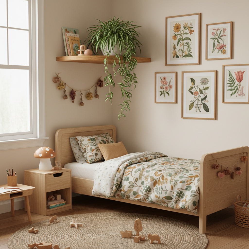 Plants add life and fresh air to any room. Choose hardy, non-toxic plants like Spider Plants or Boston Ferns that can survive in a kid’s room.