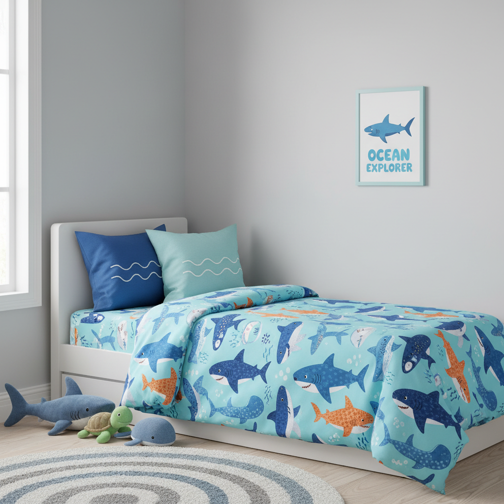 - Strategy: A gray or white room can instantly become a “shark room” with the right duvet cover and wall decals, saving you money on redecorating later.