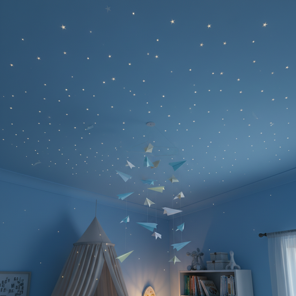 - Decor Idea: Hang a mobile (not just for babies!) or paper airplanes from the ceiling for a dreamy, airborne effect.