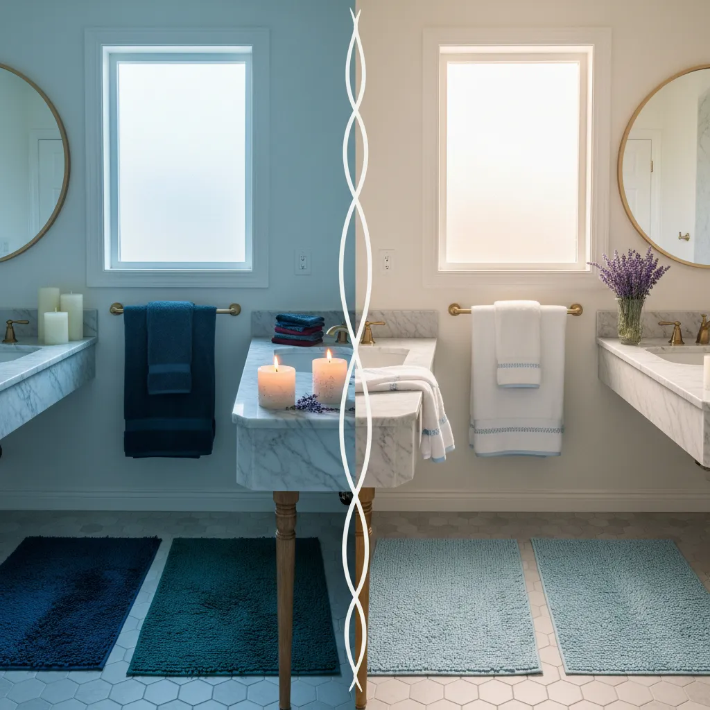 Swap out your shower curtain or change your bath mats to fit the season. Deep jewel tones make a bathroom feel like a cozy spa in the winter, while crisp whites and soft blues give it a clean, beachy feel in the summer.