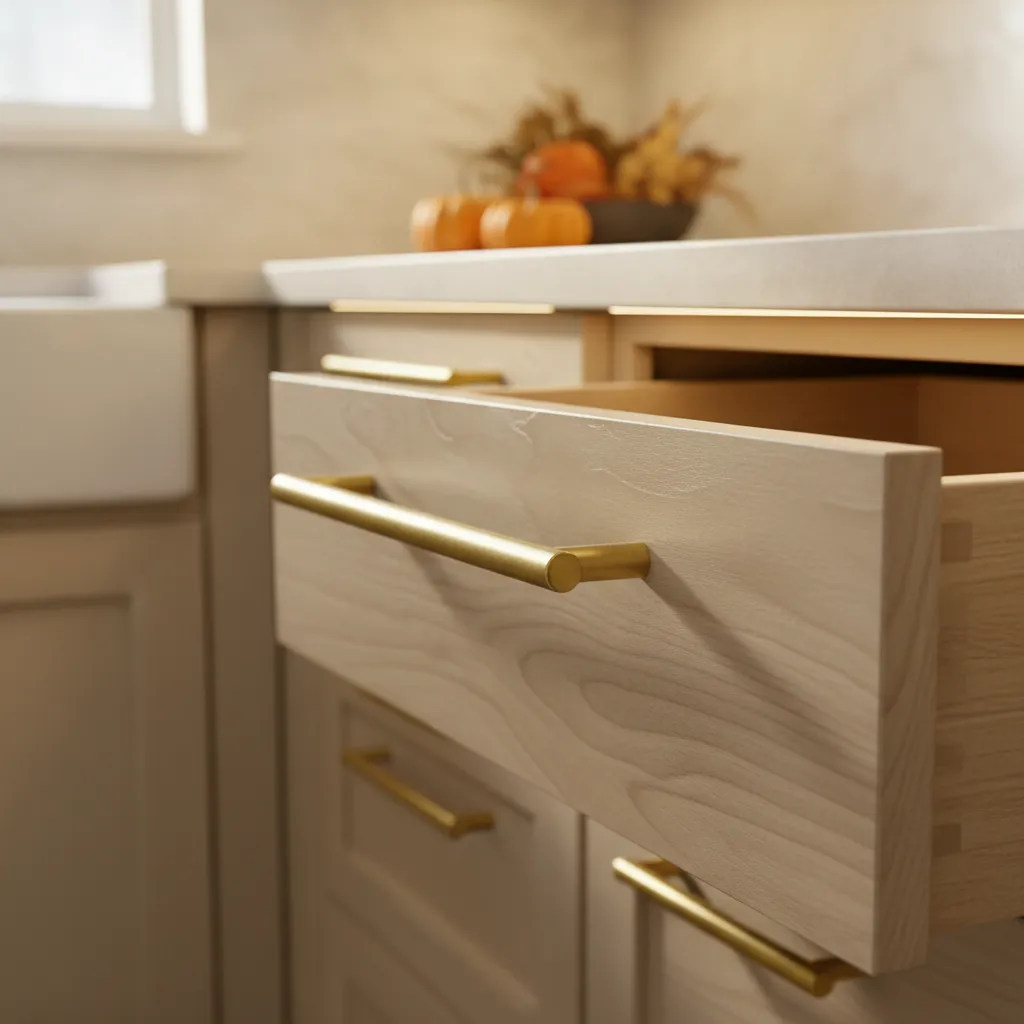 This is a quick, inexpensive DIY project. Swapping out your kitchen or bathroom drawer pulls from matte black to brushed brass can completely shift the tone of the room, adding warmth or modern coolness.