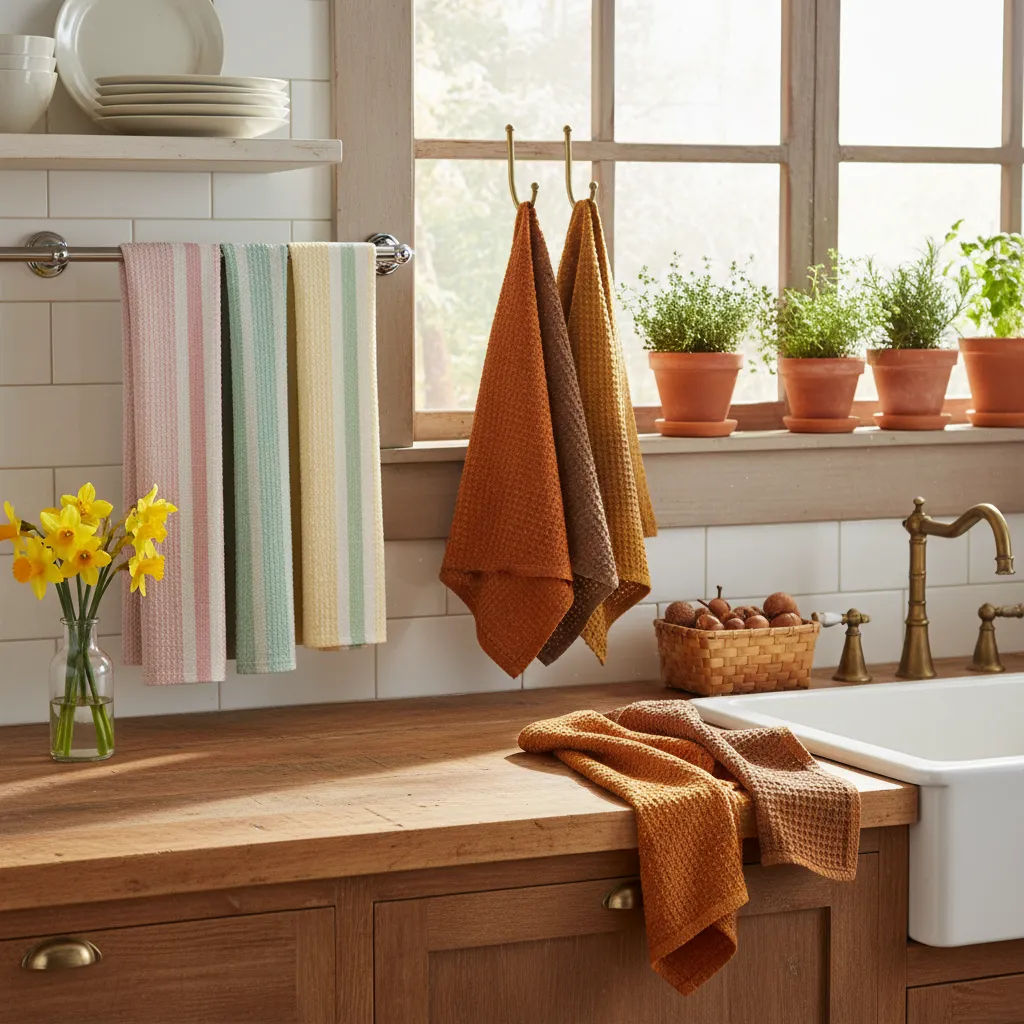 Ditch the stained, everyday dish towels and hang up a fresh set that nods to the current season. Choose pastel stripes for spring or deep, earthy tones like terracotta and mustard for autumn.