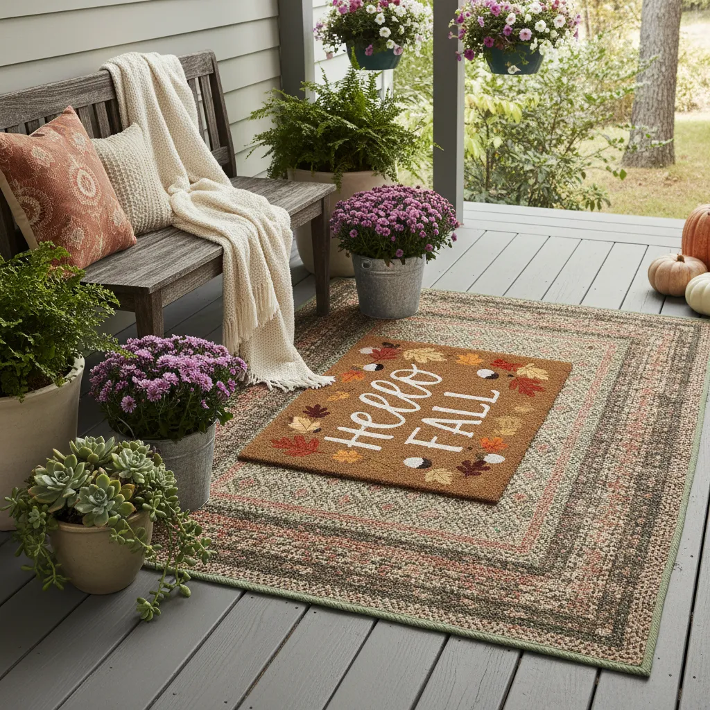 Your front porch sets the tone for your entire home. A new welcome mat instantly updates your entryway. Layer a patterned outdoor rug underneath the doormat for an extra touch of seasonal style.
