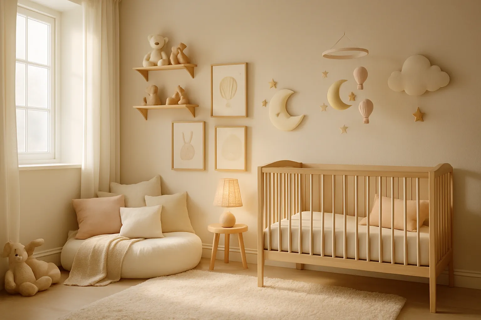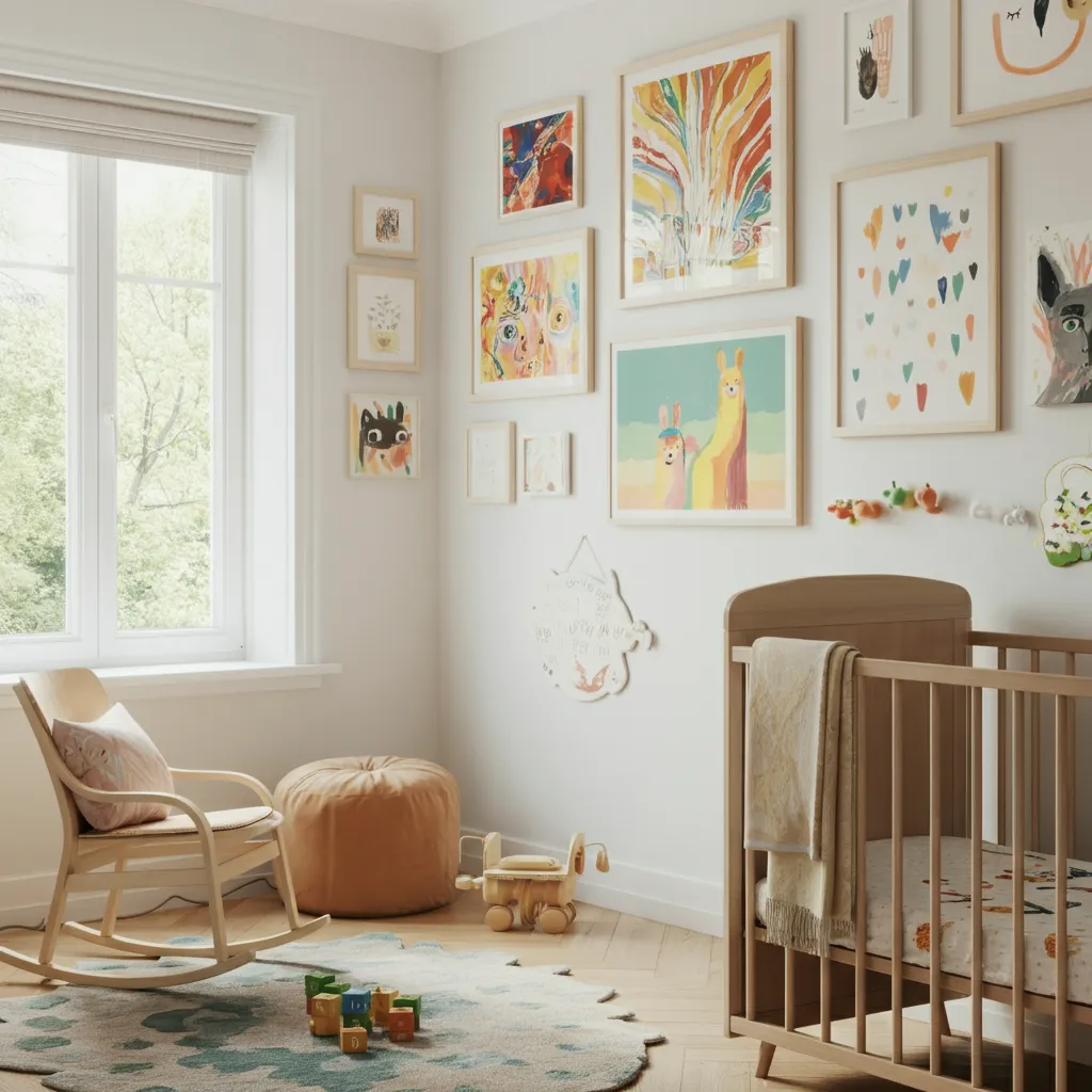 An enchanting nursery combines cozy comfort with playful, imaginative elements. Soft colors, layered textures, themed decor, and interactive touches like mobiles or wall art help create a magical and inviting space for babies.