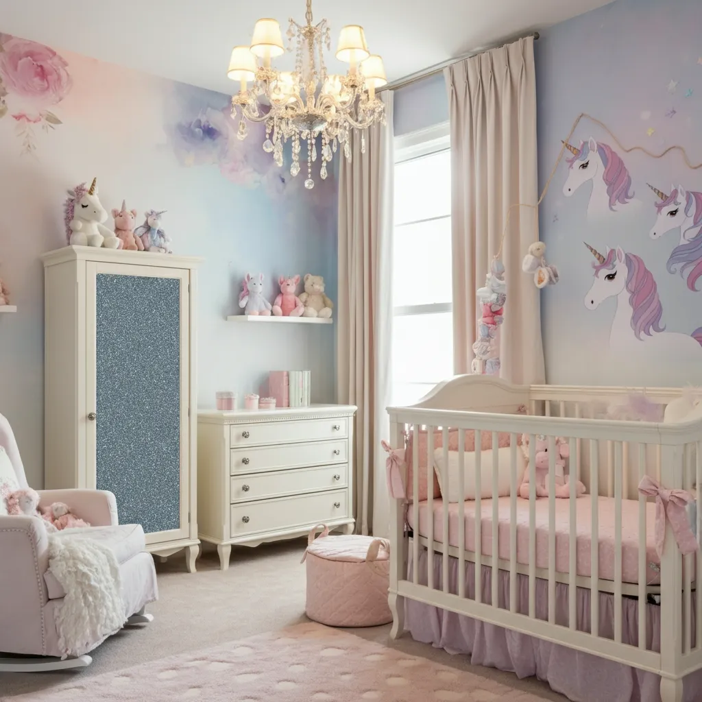 Incorporate unicorn-themed decor, pastel colors, and glittery accents for a magical space.