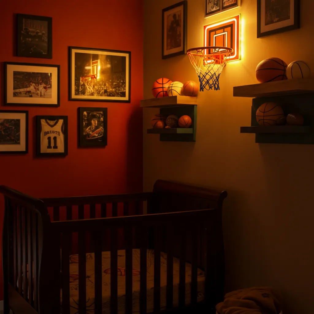 Incorporate sports-themed decor like team colors, memorabilia, and a mini basketball hoop.
