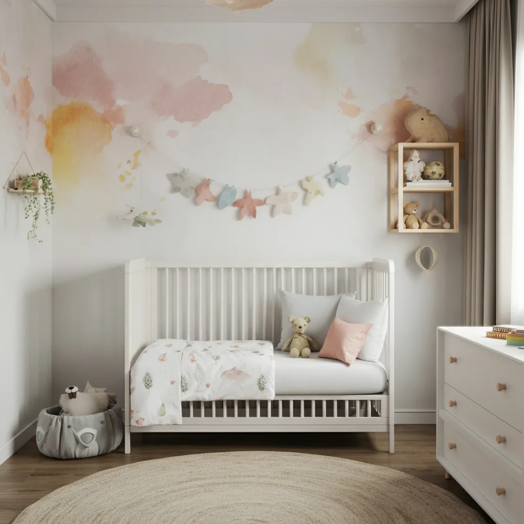 Use watercolor-inspired wallpaper, bedding, and decor for a soft and artistic vibe.