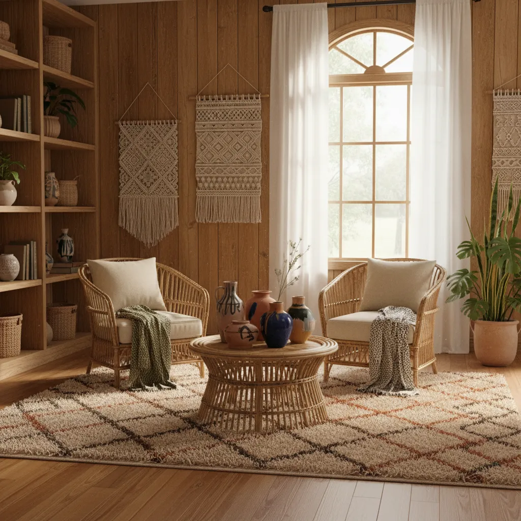 The strict “barn” look is softening into something more bohemian. Incorporating macramé wall hangings, rattan furniture, or eclectic pottery can bridge the gap between rustic and free-spirited. If this blend appeals to you, Modern Boho Living Room Ideas can guide you on merging these two popular styles seamlessly.