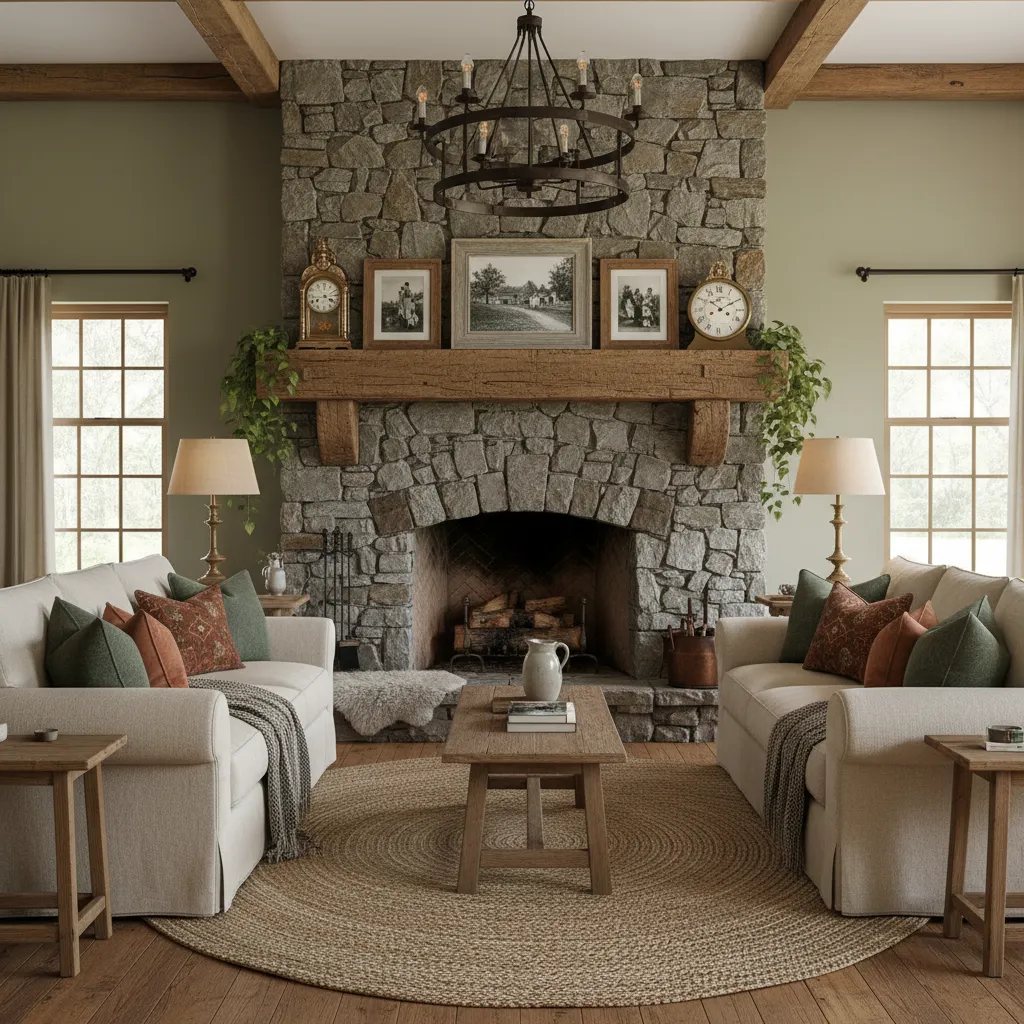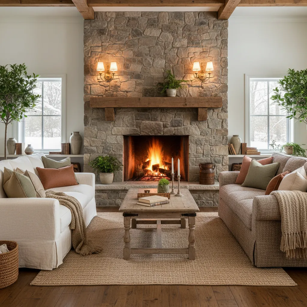 The hearth is the heart of the farmhouse home. Update your fireplace with natural stone or a chunky wooden mantel. If you are struggling with how to style the area around your TV and fireplace, looking into Creative TV Wall Ideas can help you integrate technology without ruining the rustic aesthetic.