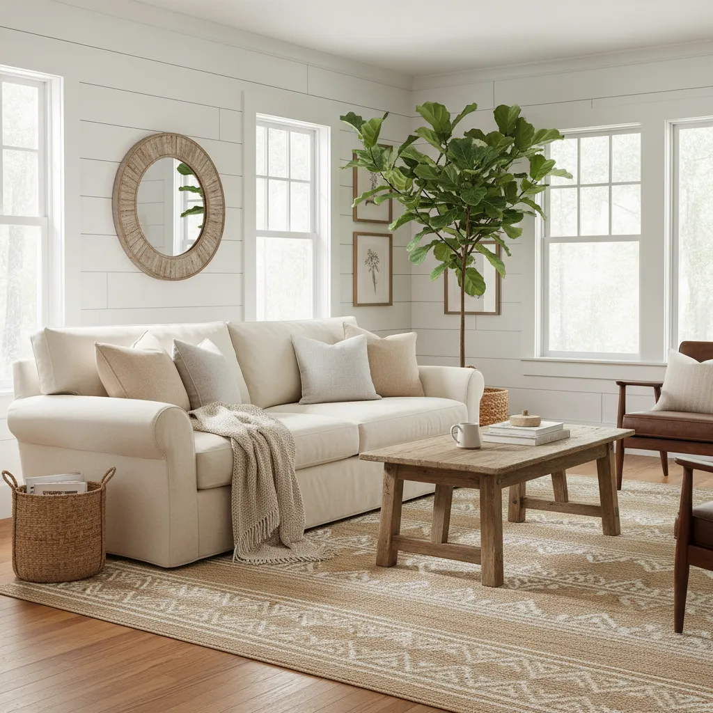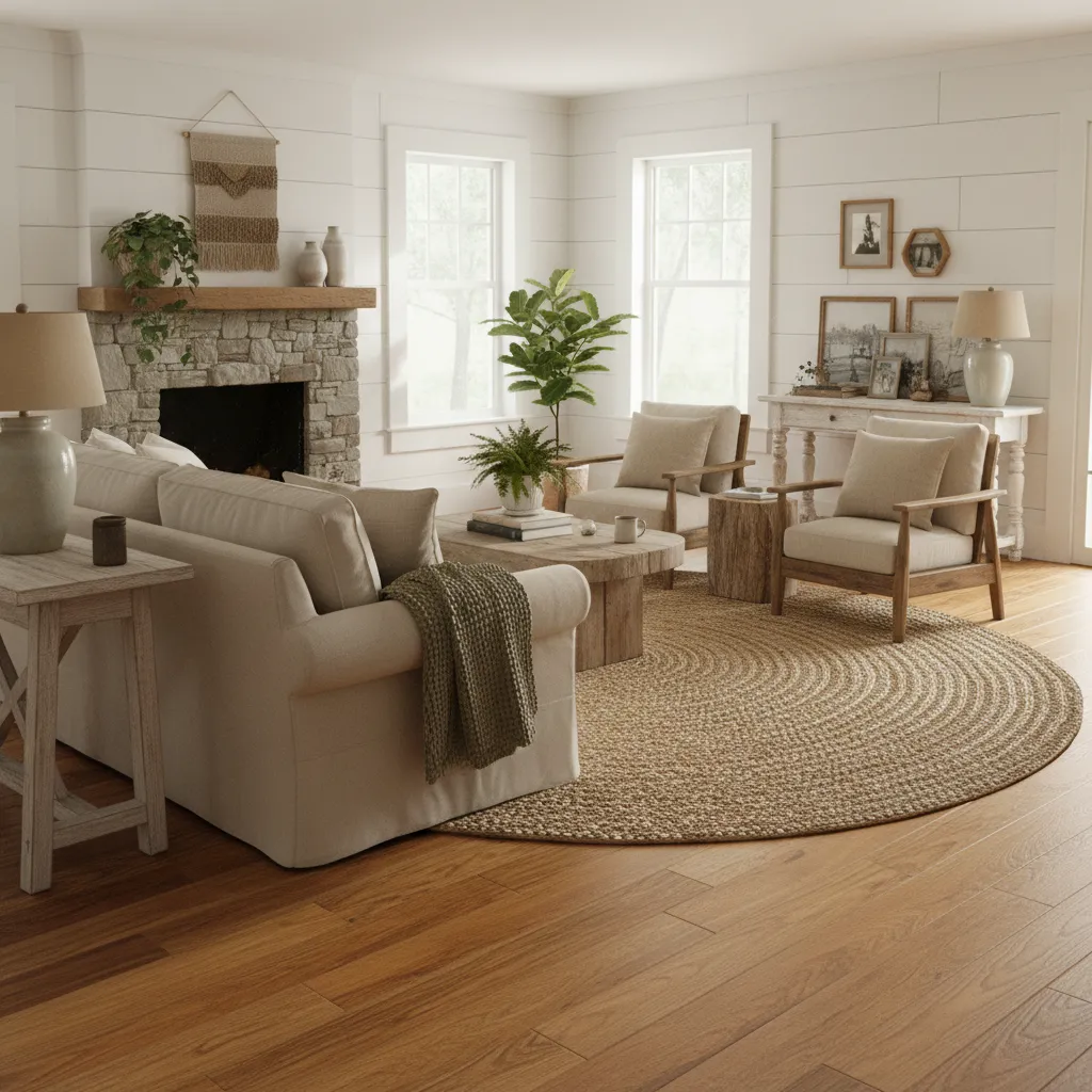 Texture is the secret ingredient that prevents a neutral room from feeling boring. In a farmhouse living room, you want to layer different materials to create a tactile experience.