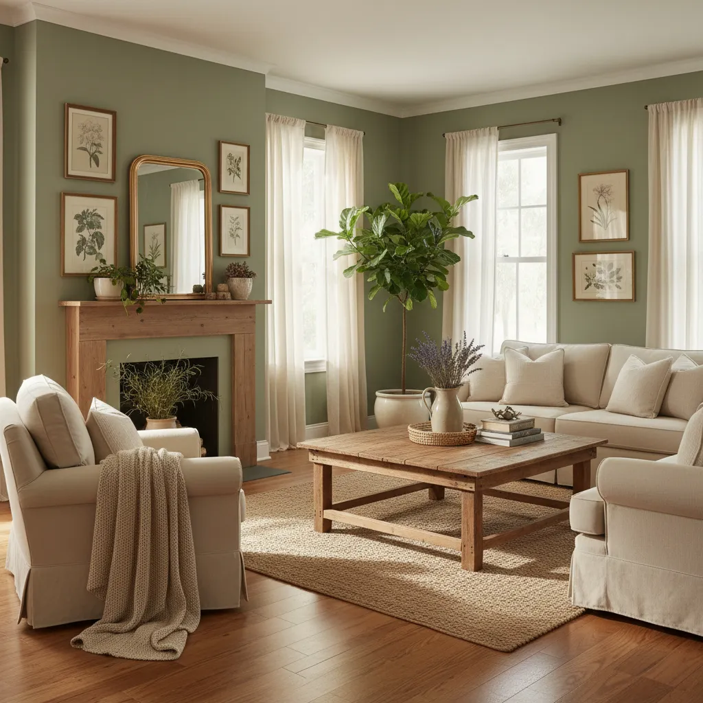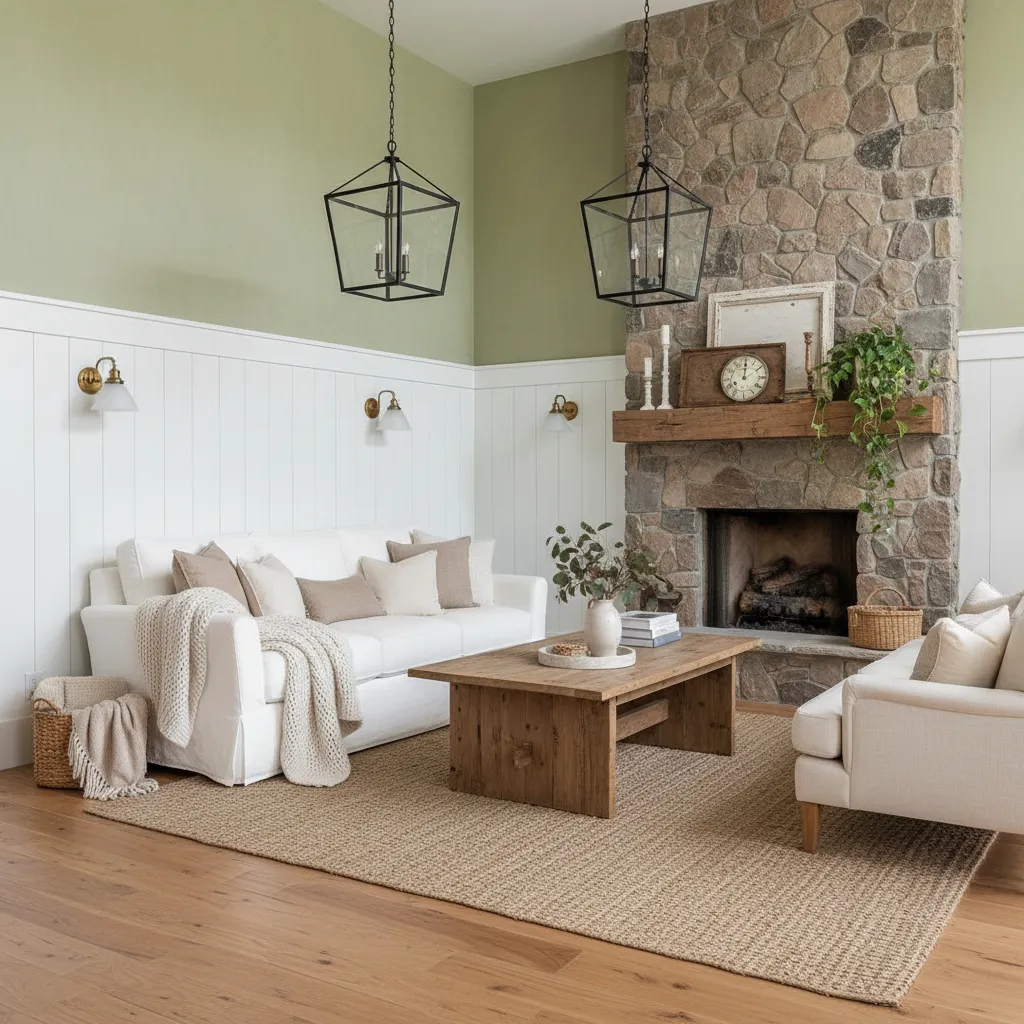 Green is nature’s neutral. Painting your walls or cabinetry in soft greens connects the indoors with the outdoors. For specific ways to use this color, check out these Sage Green Living Room Ideas, which show how versatile this hue can be in a farmhouse setting.