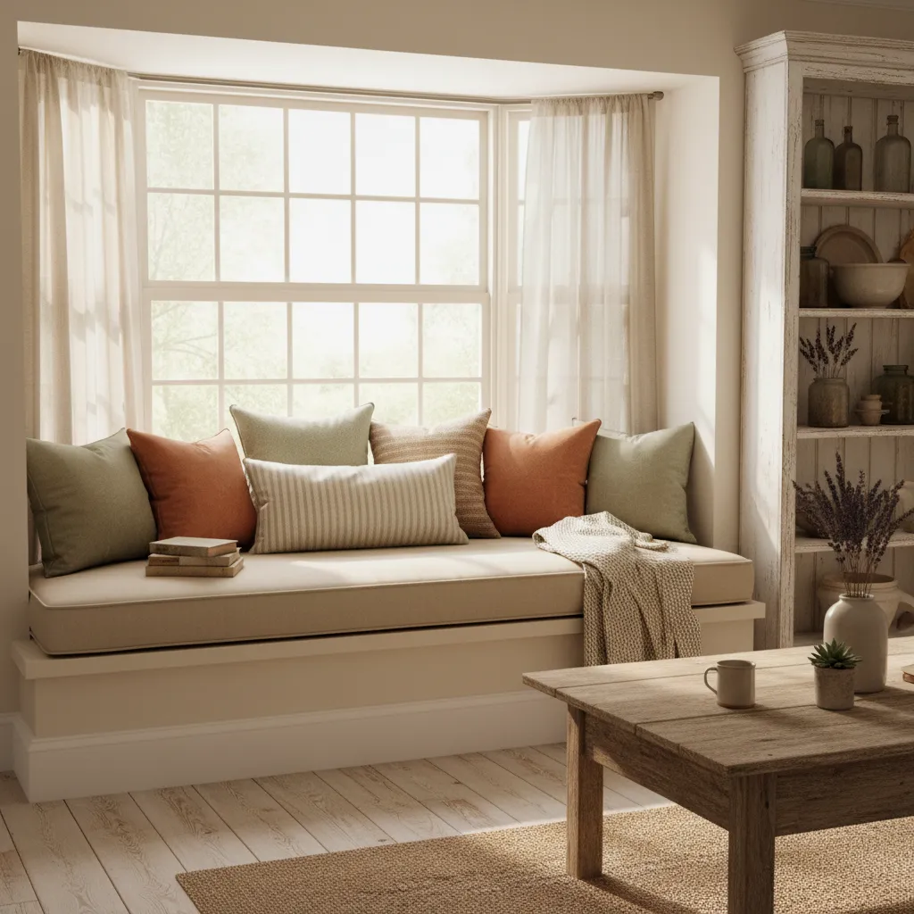 If you have a bay window or a deep alcove, utilize that space with a built-in bench. Top it with a custom cushion and plenty of throw pillows. It creates a cozy reading nook that epitomizes the slow-living philosophy of farmhouse design.