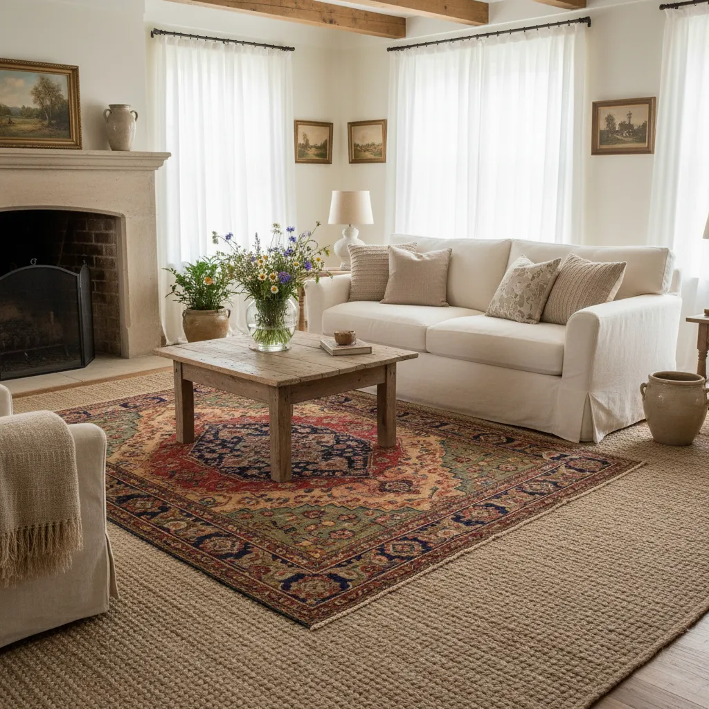 One rug is good; two are better. Start with a large, durable natural fiber rug (like sisal or jute) as your base layer. Then, place a smaller, softer vintage or Persian-style rug on top. This frames the seating area and adds a splash of pattern to the floor.