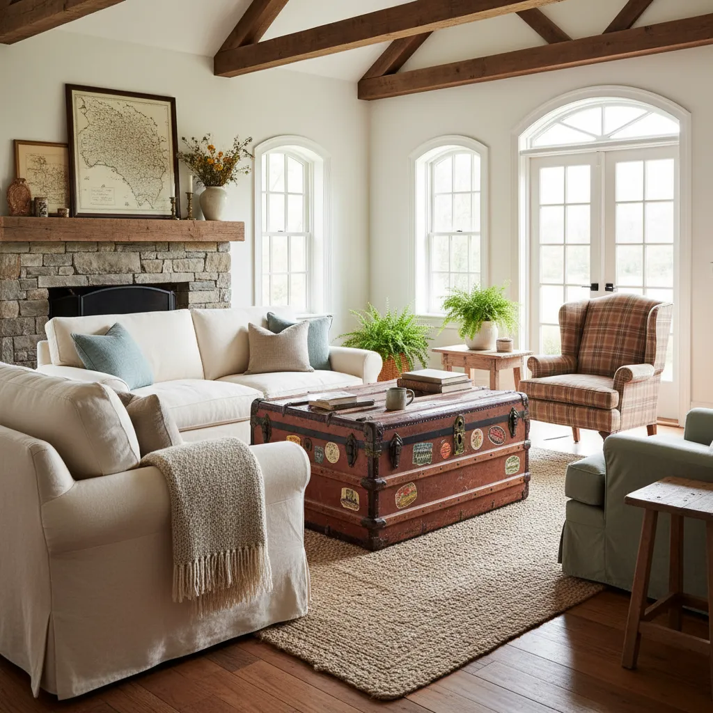 Using a battered vintage steamer trunk as a coffee table is a classic move that adds storage and story. It’s a great way to inject personality. If you love the look of vintage items, exploring Retro Living Room Inspirations can give you ideas on how to blend mid-century or vintage finds into a rustic setting.