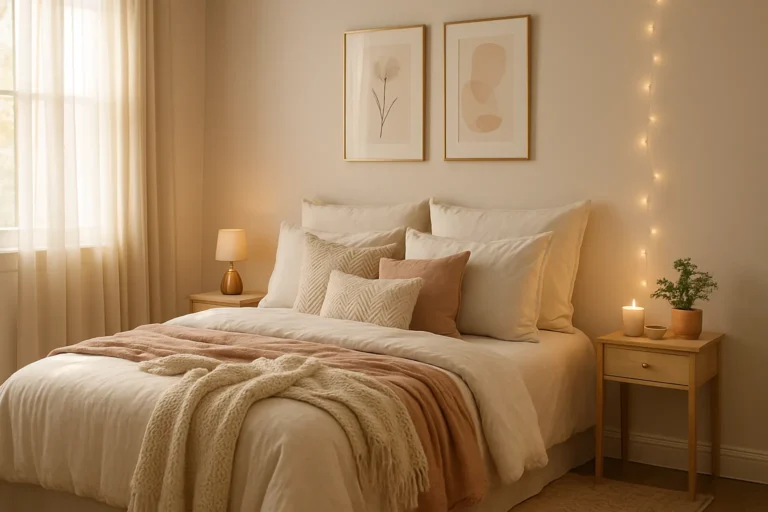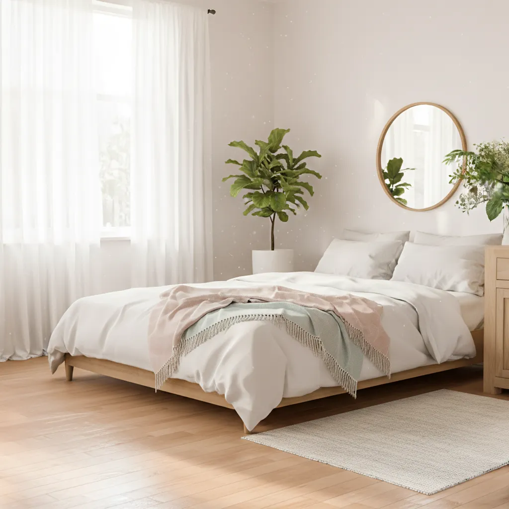 These materials add warmth and texture without feeling heavy. Consider a wicker basket for holding extra blankets, a rattan headboard, or a light-colored wood picture frame. These elements connect your indoor space with the natural world.