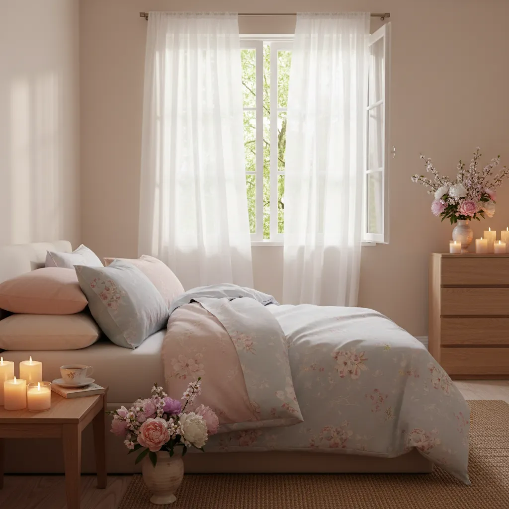 Incorporate light, airy bedding, pastel or floral accents, and seasonal décor like fresh flowers or greenery. Swapping out rugs, curtains, or throw pillows with brighter, softer colors can instantly make the space feel fresh and inviting.