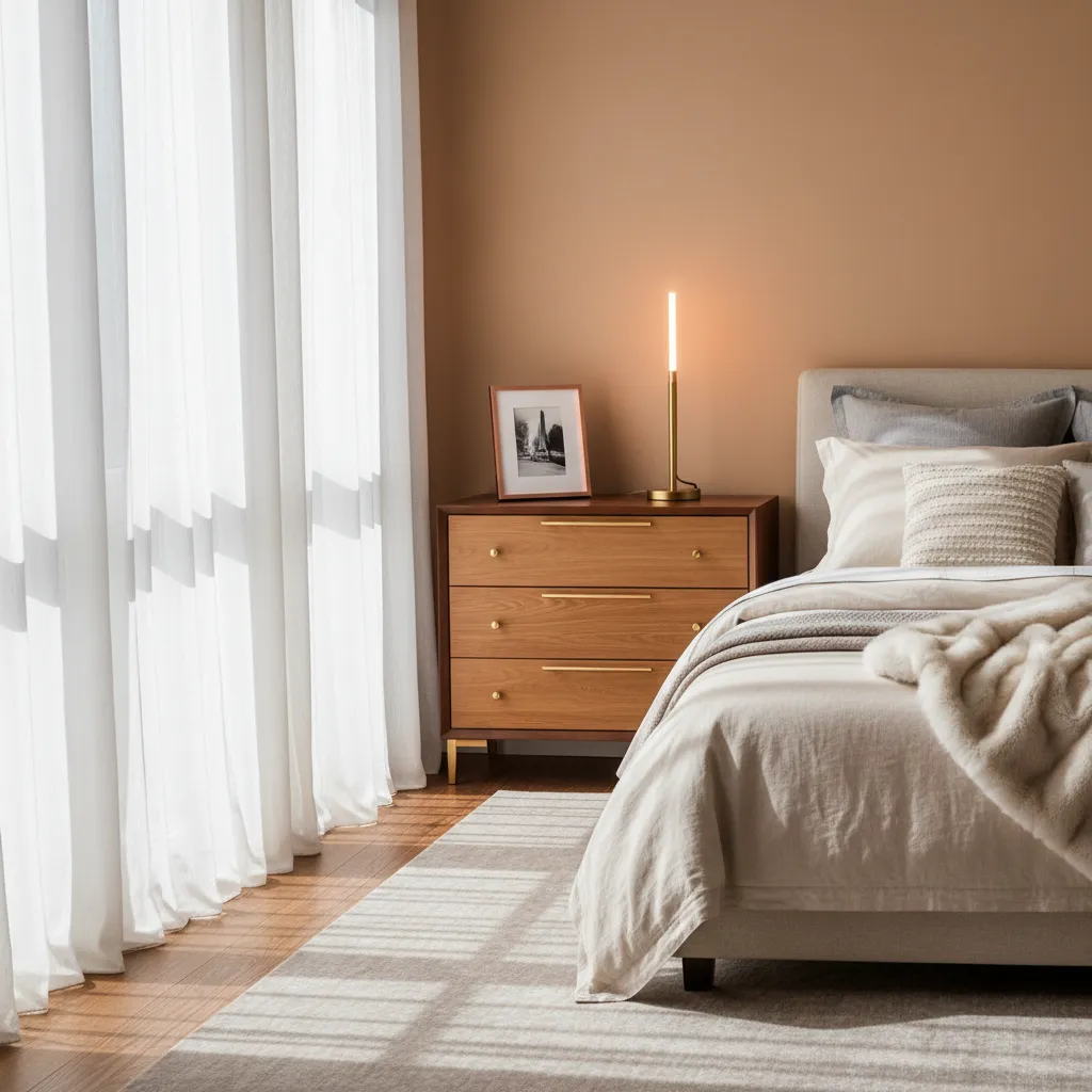 - Fabric Choice: Sheer white curtains layered with heavier blackout drapes give you versatility and a dreamy, hotel-like feel.