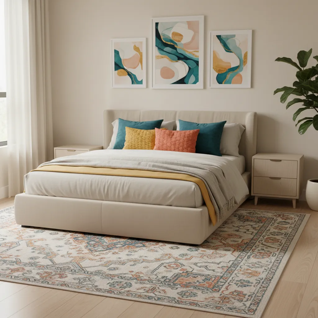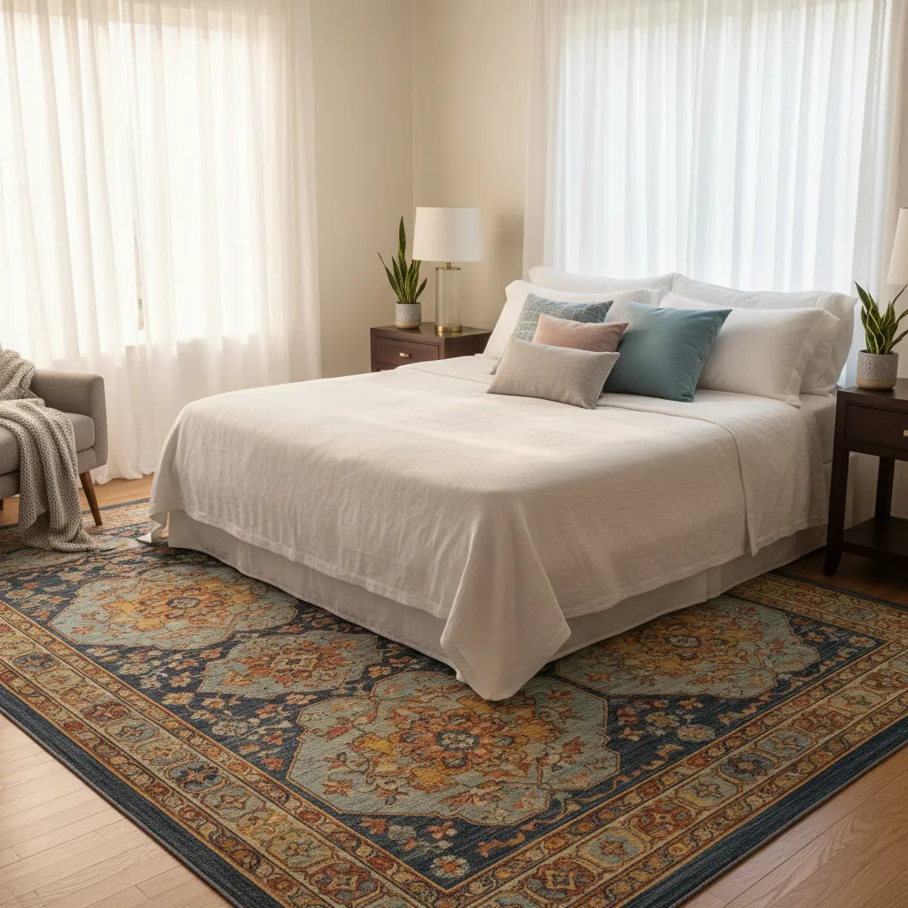 - Sizing: Ensure the rug is large enough that it extends at least 18 inches beyond the sides of the bed.
