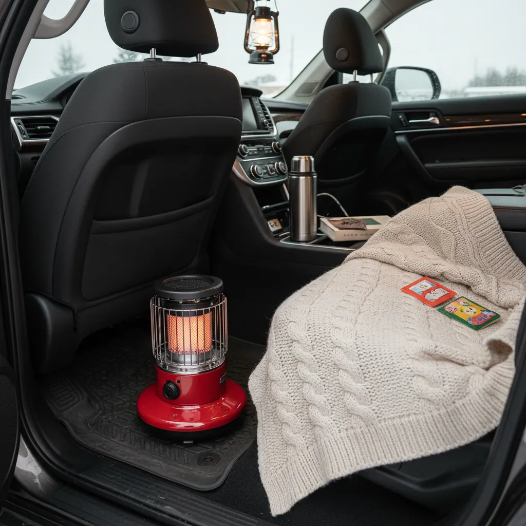 - Invest in a portable propane heater or an electric blanket with a car adapter.