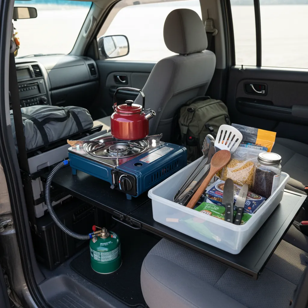 - Use a compact camping stove or electric hot plate for cooking.