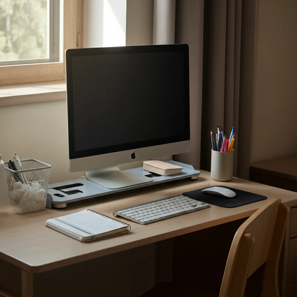A monitor stand not only raises your screen to a more comfortable viewing height but also provides extra storage space underneath for your keyboard or notebooks.