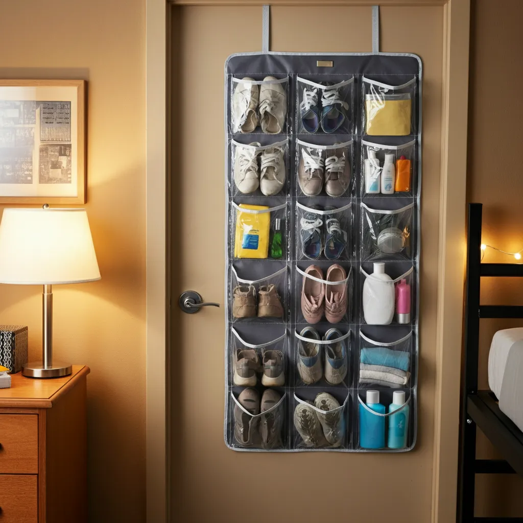 Don’t forget the back of your door! It’s prime real estate for storage. Use an over-the-door shoe organizer for footwear, or find one with larger pockets to store toiletries, snacks, or school supplies.
