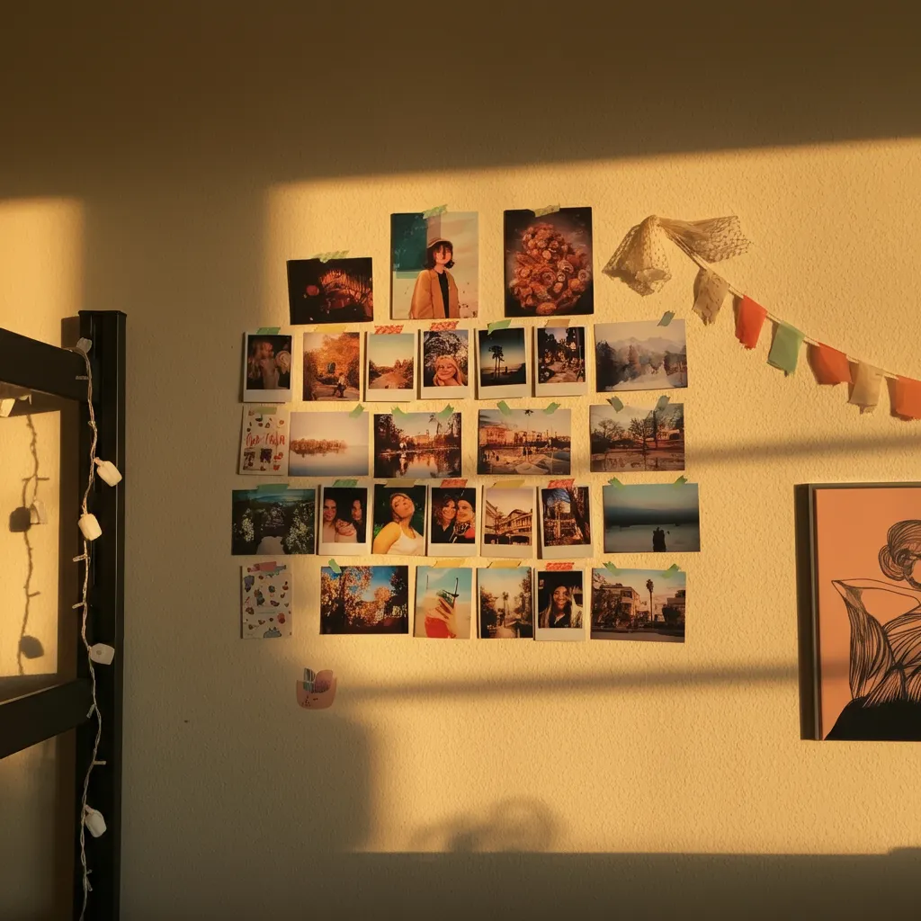 Use washi tape or removable adhesive strips to create a gallery wall of your favorite photos, postcards, and art prints. This is a fantastic way to surround yourself with memories and things that inspire you.