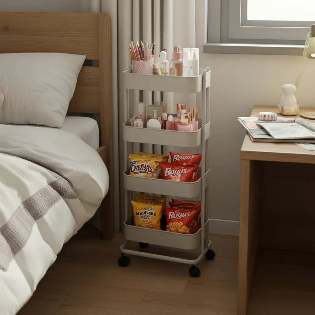 A slim, multi-tiered rolling cart is incredibly versatile. It can serve as a mobile nightstand, a snack station, a craft supply organizer, or a place to store your beauty products. You can easily move it wherever you need it.