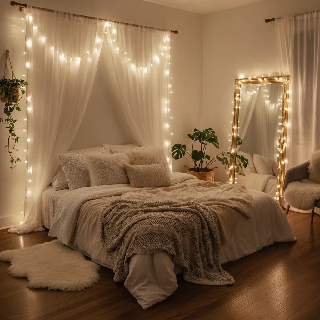 This isn’t just for dorm rooms. Drape delicate LED string lights (like the VISSVASS) along the curtain rod or around a large floor mirror. The twinkle adds a magical, whimsical touch that makes dark winter evenings feel festive and warm.