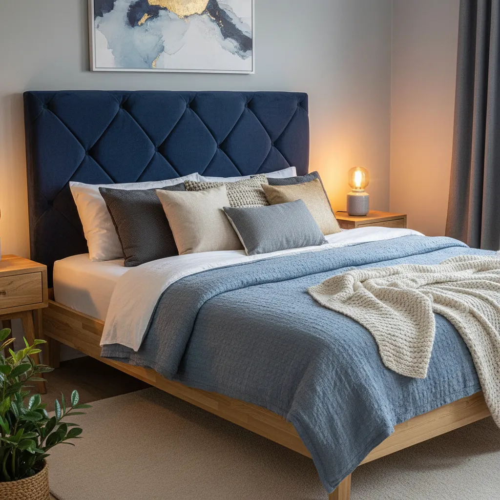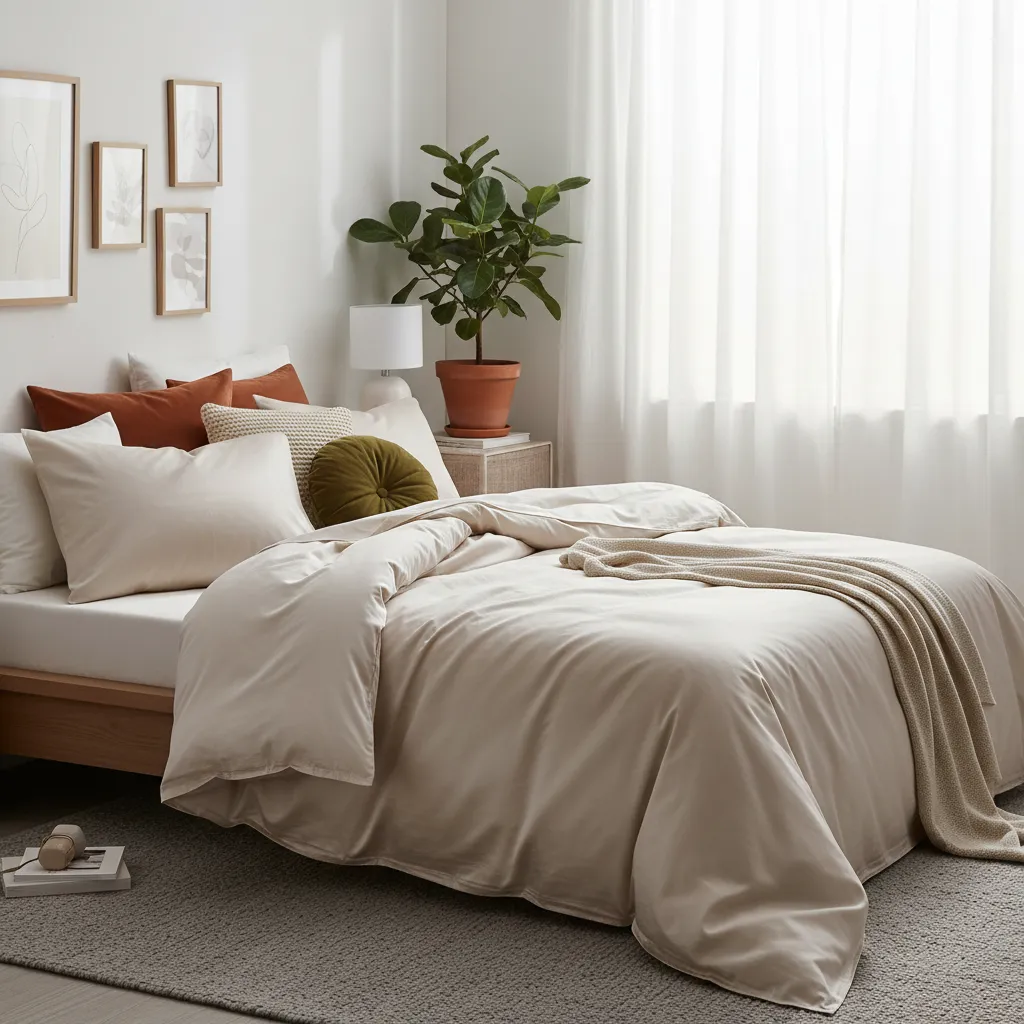 Use a duvet cover set like NATTJASMIN, which has a silky-soft feel. Instead of pulling it tight, embrace the “messy bed” aesthetic. Fold the duvet halfway down and pile on cushions in different fabrics—velvet, cotton, and wool—to create an inviting nest.