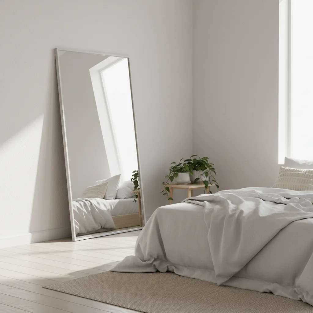 Lean a large HOVET mirror against a wall opposite a window. It bounces natural light around the room, making the space feel brighter and more open during the day. At night, it reflects the warm glow of your lamps, doubling the coziness.