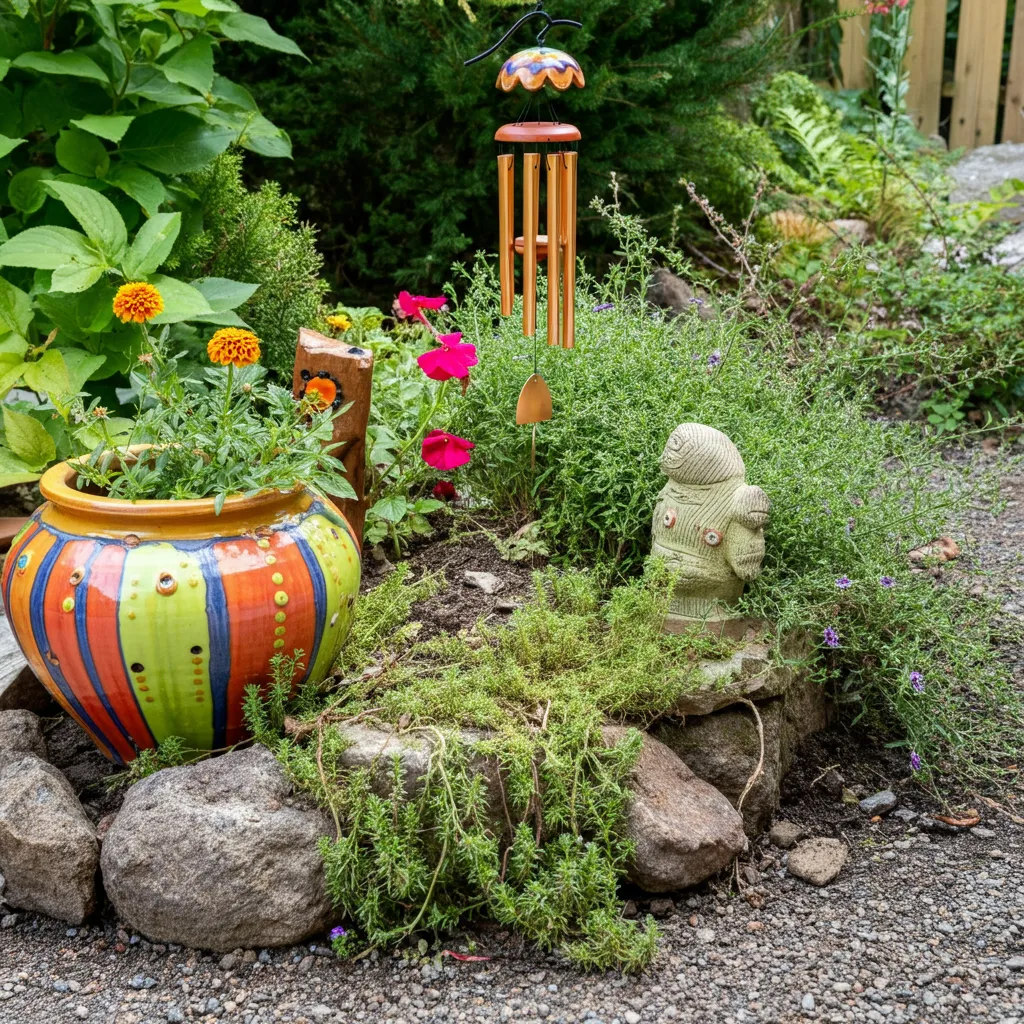 A unique sculpture, a colorful ceramic pot, or a whimsical wind chime can add a personal touch. Choose pieces that reflect your style and integrate them into your planting scheme.