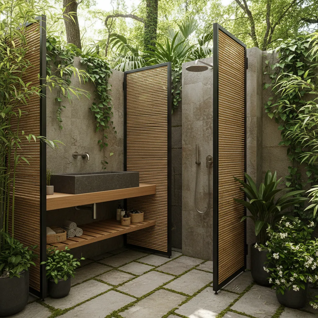 Enjoy the freedom of an open-air shower while maintaining privacy with stylish screens. Bamboo, frosted glass, or wooden slats are excellent options for creating a secluded yet airy space.